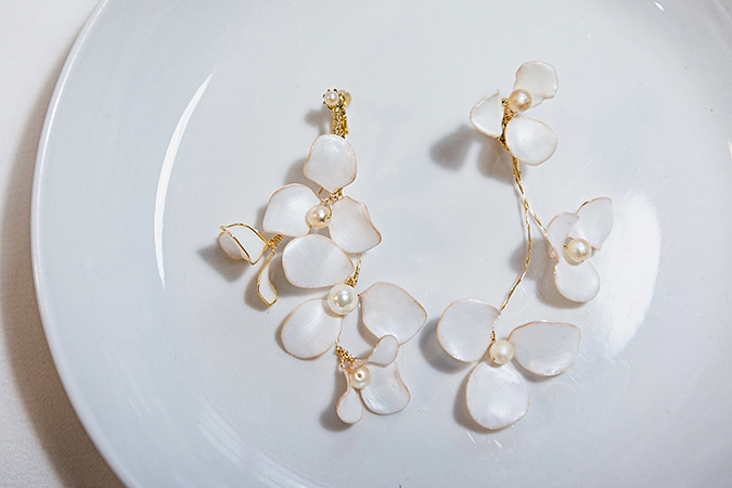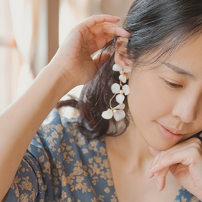 • 飾品為金屬材質,使用完畢建議用吹風機,以冷風稍微吹乾飾品上的濕氣,保持乾燥。