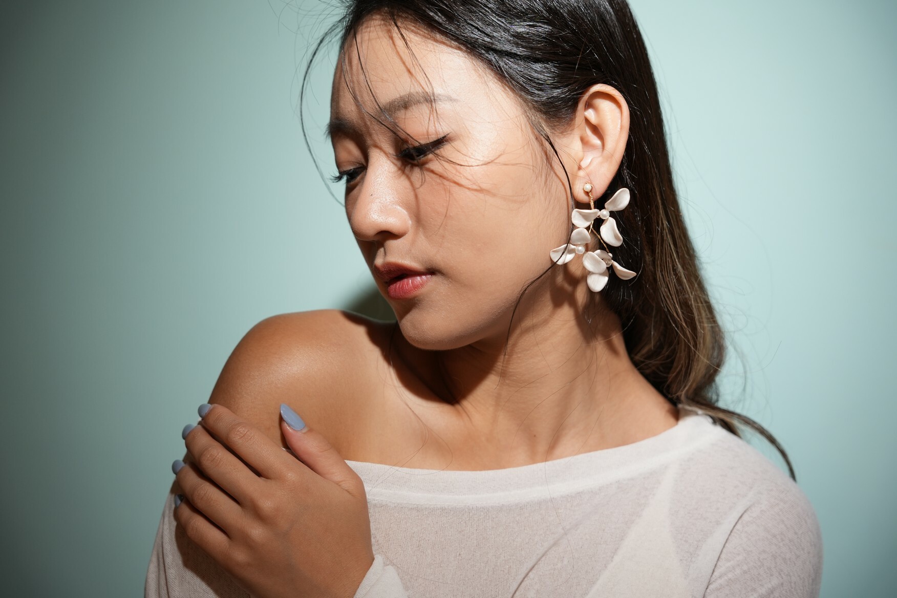 • 飾品為金屬材質,使用完畢建議用吹風機,以冷風稍微吹乾飾品上的濕氣,保持乾燥。