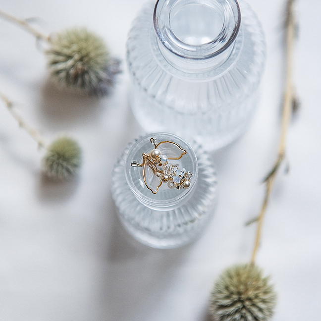 • 請勿使用任何液態保養或擦拭,並避免飾品直接或大量噴到美髮用品,以利飾品保存