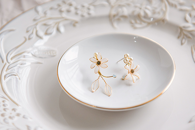 • 飾品為金屬材質,使用完畢建議用吹風機,以冷風稍微吹乾飾品上的濕氣,保持乾燥。