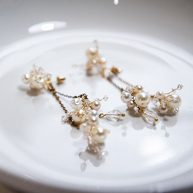 • 飾品為金屬材質,使用完畢建議用吹風機,以冷風稍微吹乾飾品上的濕氣,保持乾燥。