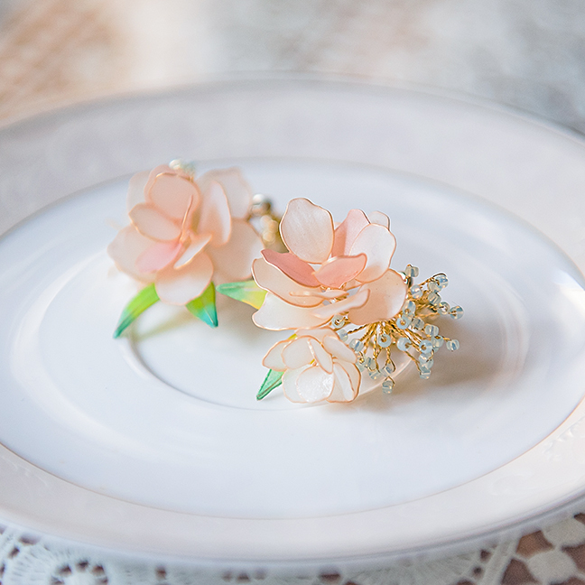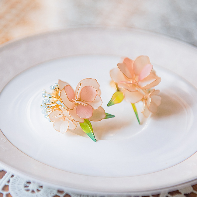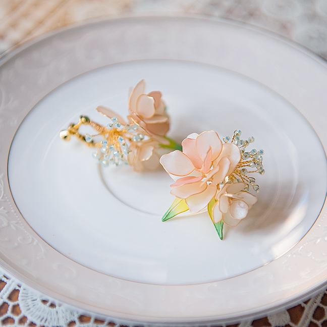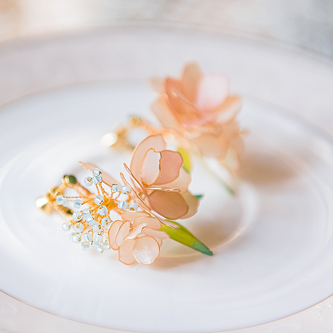夏時繡球,秋末芙蓉,鬢邊簪花,幽香顧盼。嚮往美麗的人事物乃是天性,古時不論男女皆有簪花習慣,只為花兒那一分美三分幽香,而今春花把花影定格,留在你我的耳旁時常相伴。